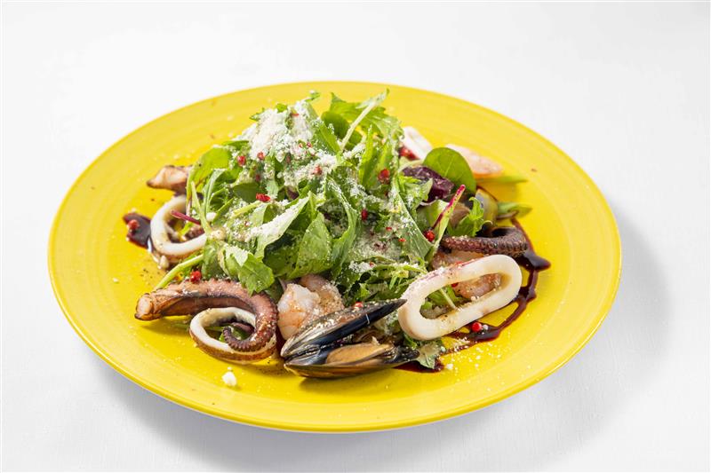 当店のシーフードサラダはムール貝、タコ、海老が入ったサラダです。