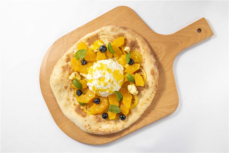 アグルミは日本語で「柑橘類」といわれシロップに漬けてレモンとみずみずしいオレンジがアツアツのピザマッチ