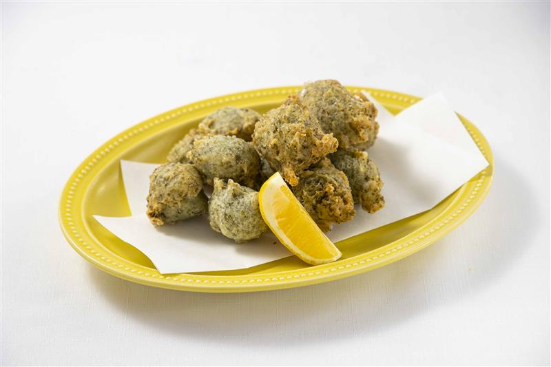 ピザ生地と自家製あおさを混ぜ合わせ、フライヤーでカリっと揚げたゼッポリーニ。
