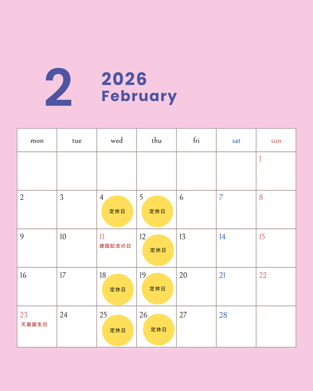 🗓 2月の営業カレンダー