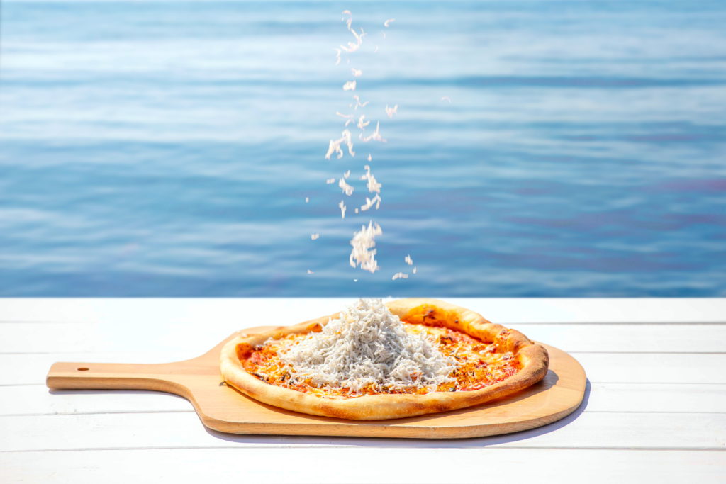 中でも、西海岸をドライブしていると目に飛び込んでくるのが、真っ白な外観の『miele(ミエレ)』。 海に浮かぶようなテラス席で、キラキラ光る波を眺めながら、溢れんばかりのしらすや蜂蜜たっぷりのピザを頬張る時間は、まさに至福。 春の心地よい潮風を感じながら、絶景に包まれる時間は、日常の疲れをすっかり忘れさせてくれるはずです。