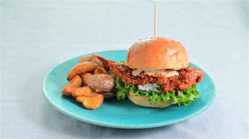 淡路牛を贅沢に使用した肉汁たっぷりのパティと、タルタルソース、新鮮なトマトをサンドした、ボリューム満点の一品です。